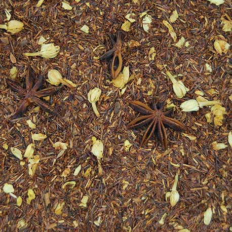 Rooibos, trozos de canela, anís estrellado, aromas, flores de jazmín