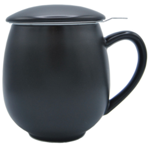 Taza negra de porcelana, con tapa, de 0,35 l. Incluye filtro de malla fina de acero inoxidable.