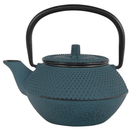 Tetera color azul de hierro colado con el interior esmaltado, de 0,35 l. Incluye filtro de acero inoxidable.